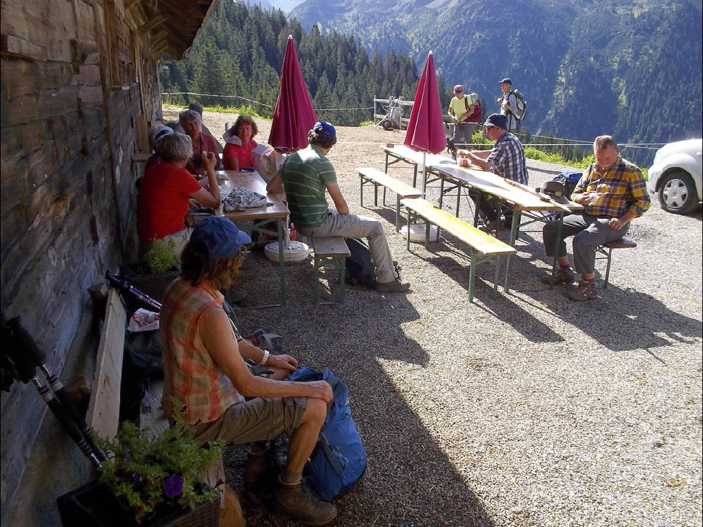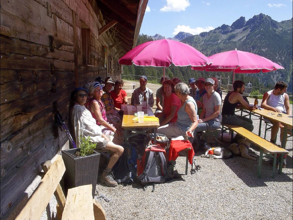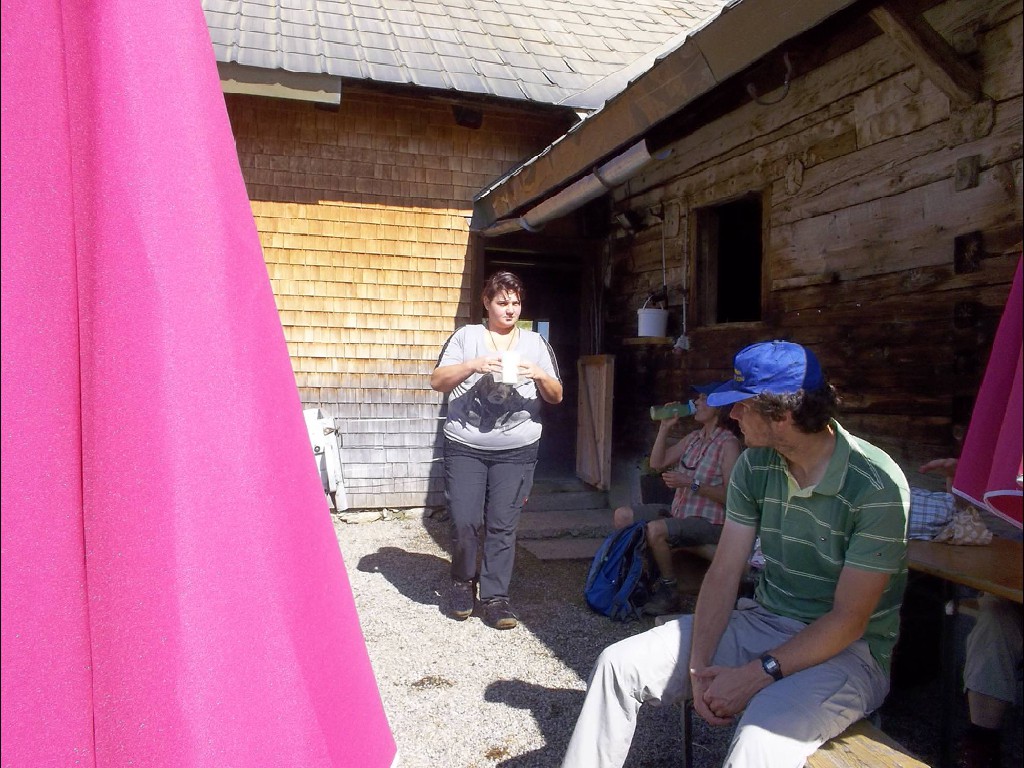 Der Rückweg erfolgte auf gleichem Pfad, aber dafür besonders reich an Ausblicken und Panoramasicht. Natürlich gab es eine weitere Einkehr auf der gleichen Alpe, diesmal mit Bier, Holundersaft und Kaffee.