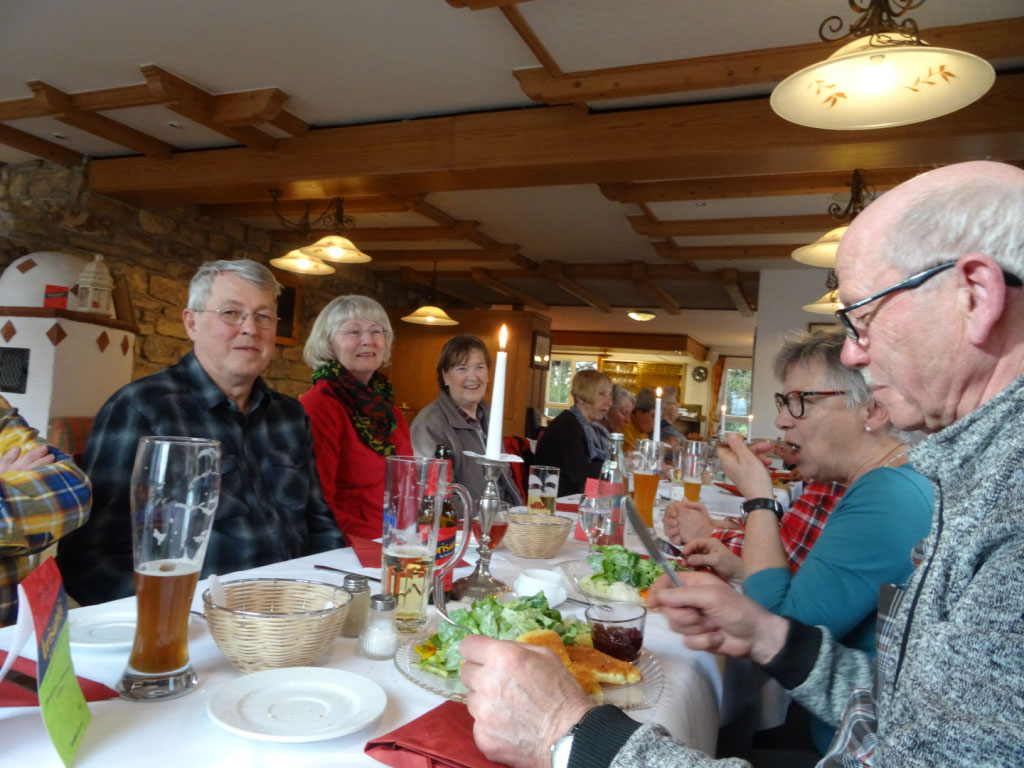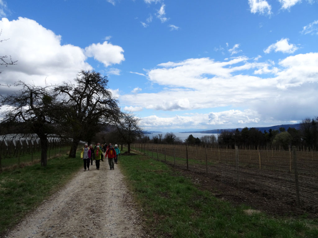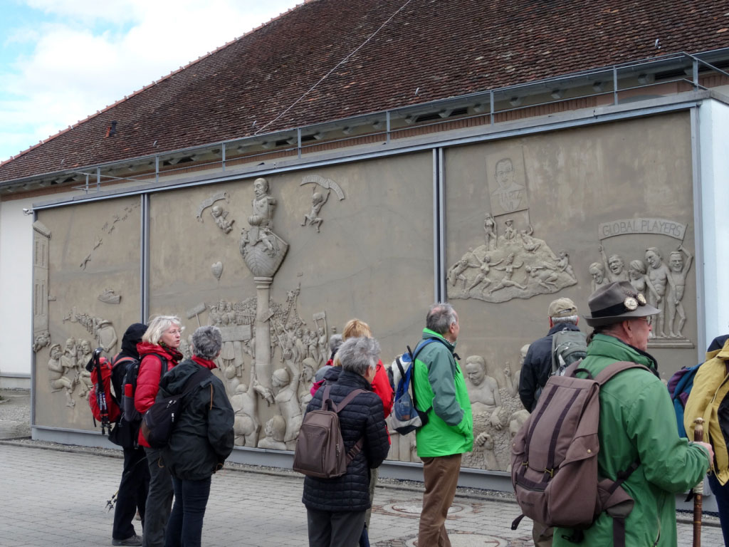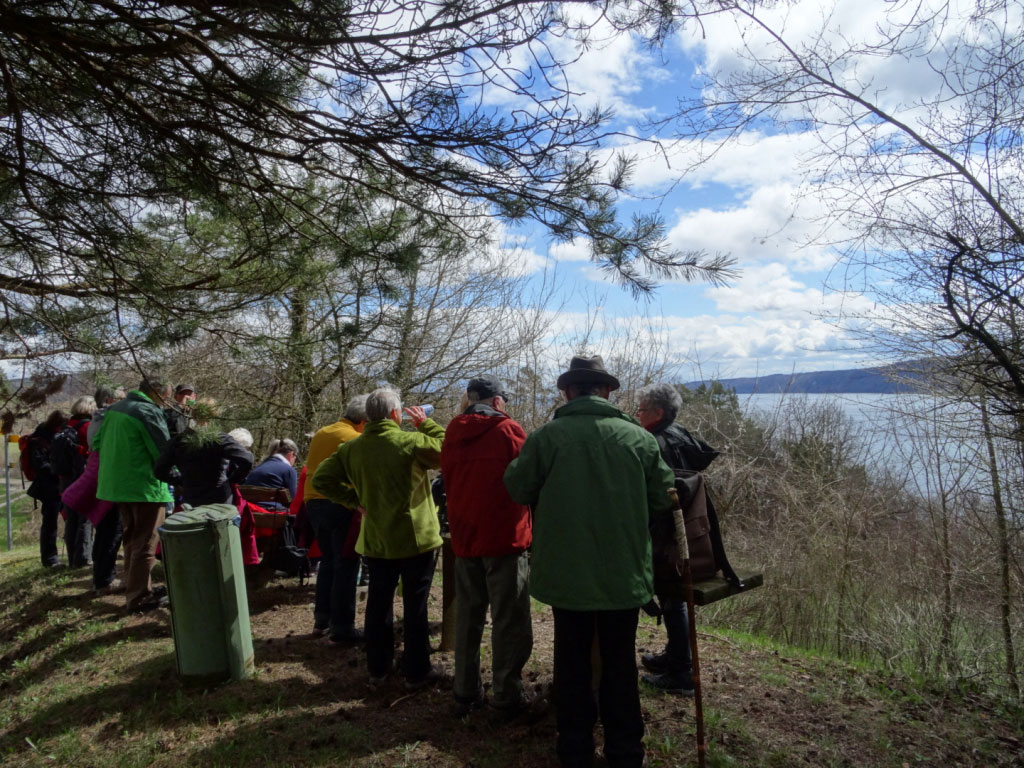 Während wir die Jacken an und wieder auszogen, es dunkler und auch wieder heller wurde und die Sonne und der Regen sich abwechselten genossen 19 Wandersleute die Wanderung, die uns zuerst zum Werk 'Ludwigs Erbe' von Lenk in Ludwigshafen führte. Weiter ging es ein Stück am Bodensee entlang bevor der Aufstieg auf den Spittelsberg begann. Von dort genossen wir den Blick auf den Bodensee und weiter ging es durch den Wald zum Römerbrunnen. Danach waren nur noch der Abstieg und ein paar Bäume zu überwinden bevor es zur verdienten Einkehr wieder nach Ludwigshafen ging.