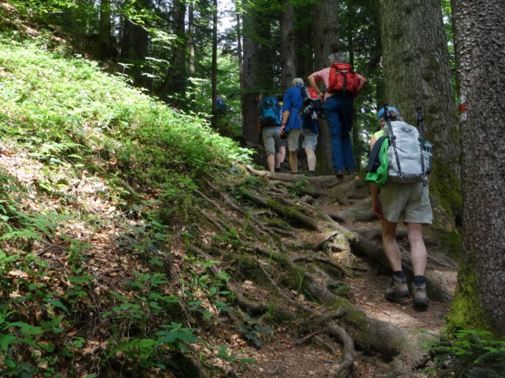 Weiter ging es durch Hirschbergsau mit einem Abstecher in die Maria-Heimsuchung-Kapelle. Von dort ging es immer weiter bergauf. Obwohl einmal ging es für mich auch wieder bergab, denn ich bin am weißem Waldvöglein ohne es zu sehen, vorbeigegangen. Aber nachdem Josef es gesehen hatte, ließ ich mich gerne von Ihm die paar Meter wieder zurückführen.