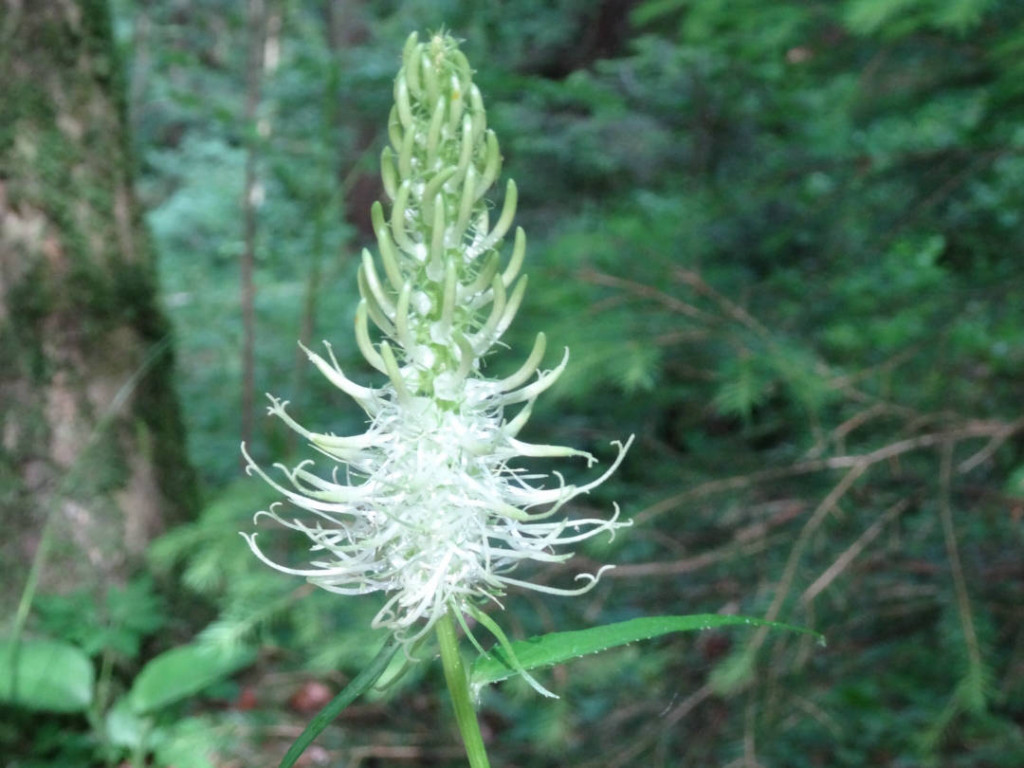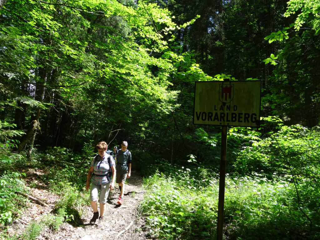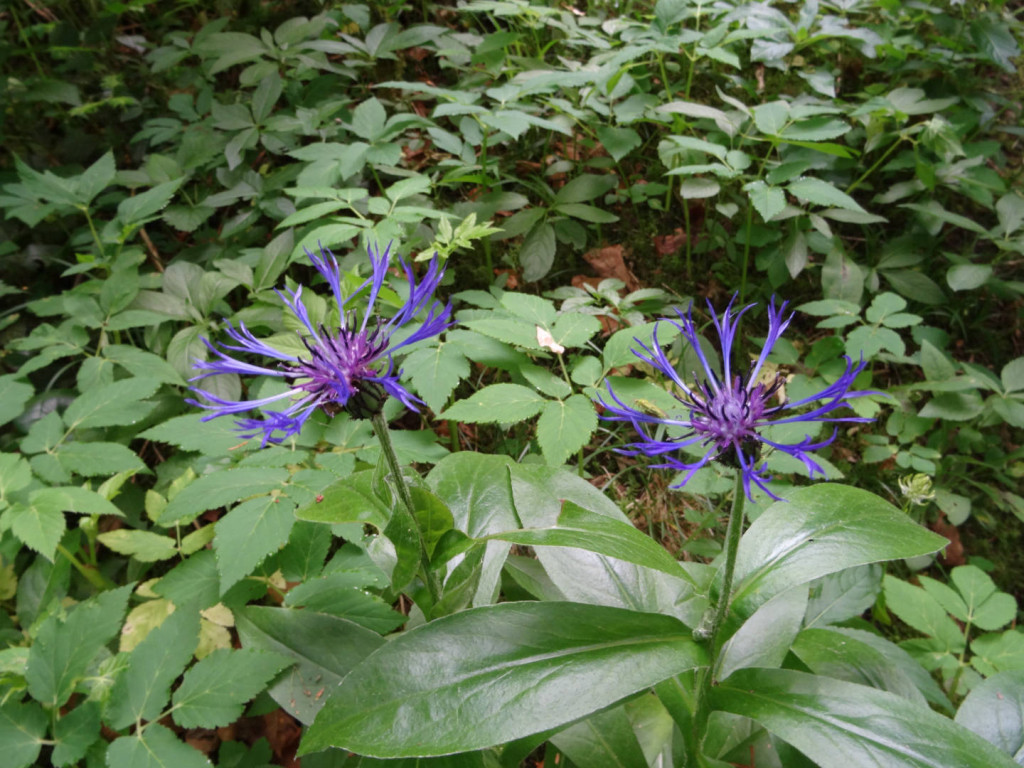 Gemütlich begann die Wanderung über Wiesen bevor auch direkt der erste Abstieg zum Kesselbach kam. Nachdem wir diesen überschritten hatten waren wir auch schon in Österreich und der erste Aufstieg nach Hirschbergsau lag vor uns. Weiße Teufelskrallen und Berg-Flockenblumen ließen sich am Wegrand des Steiges bewundern.