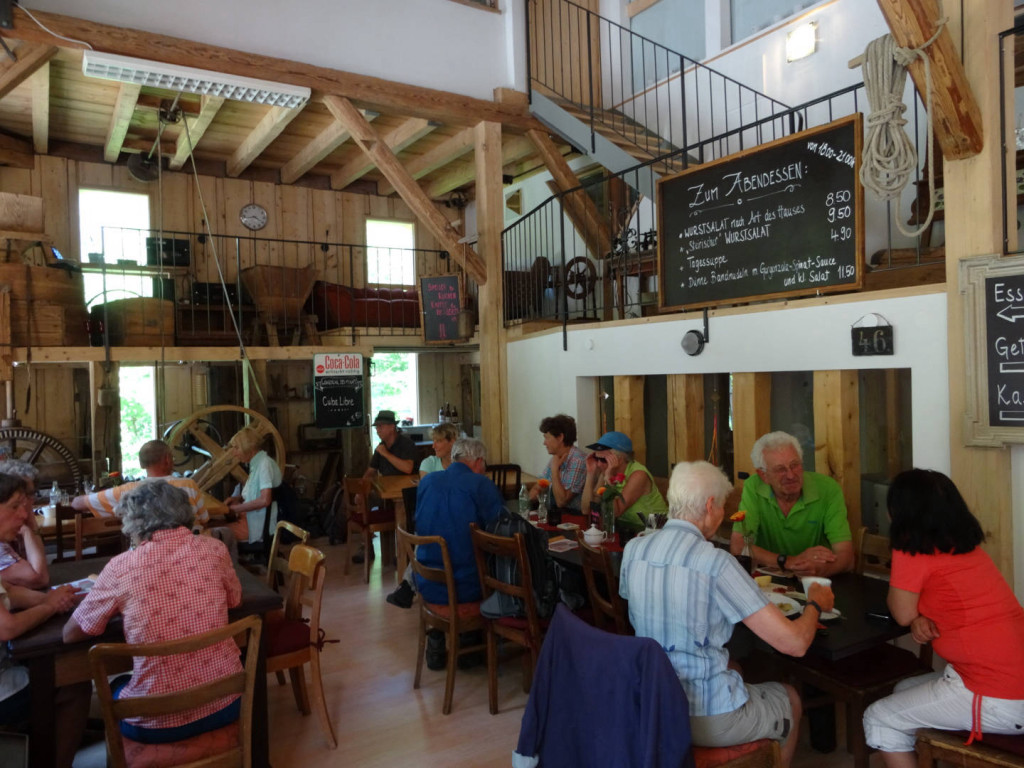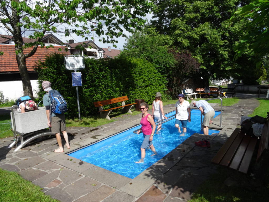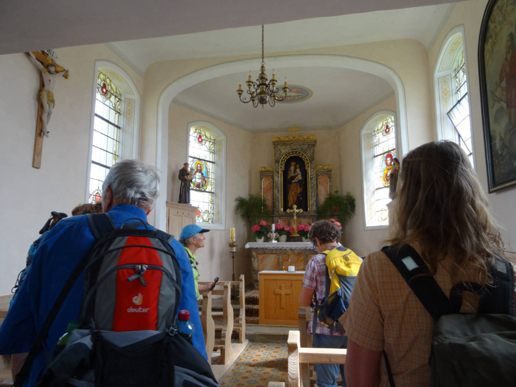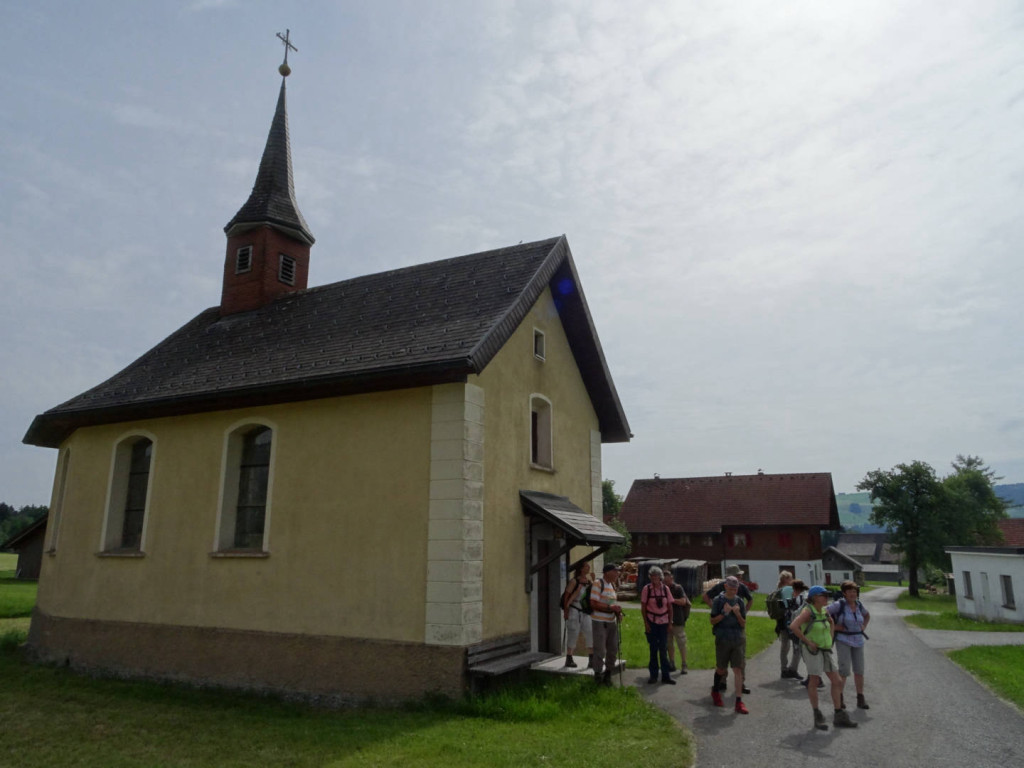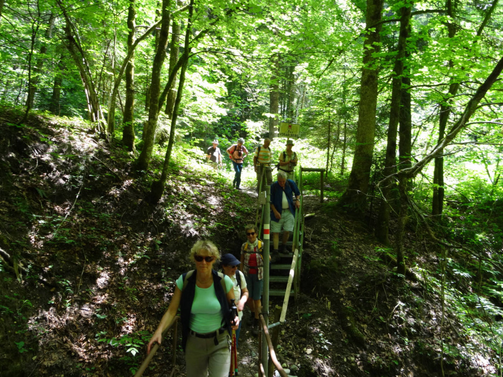 Danach begann der Abstieg vorbei an der Kapelle am Hirschberg, kurzer Blick hinein durfte aber nicht fehlen, und auf anderem Wege ging es hinunter Richtung Hirschbergsau. Erneut ging es dann auf einem anderen Steig wieder hinunter zum Kesselbach und nachdem wir die Landesgrenze wieder überschritten hatten auf der anderen Seite des Baches wieder hinauf zur Katzenmühle. Dort wurde kurz eingekehrt bevor die letzten Kilometer zurück nach Scheffau vorbei an einem Froschkonzert begangen wurden. In Scheffau wurden dann noch schnell die Füße abgekühlt und die Heimfahrt angetreten.