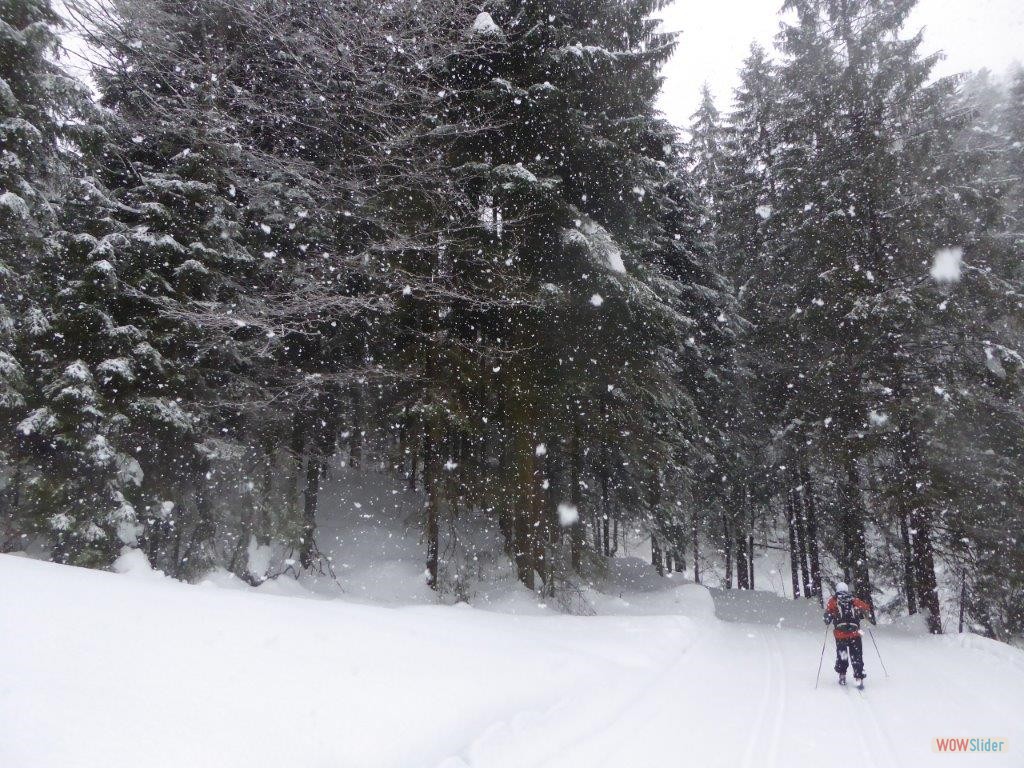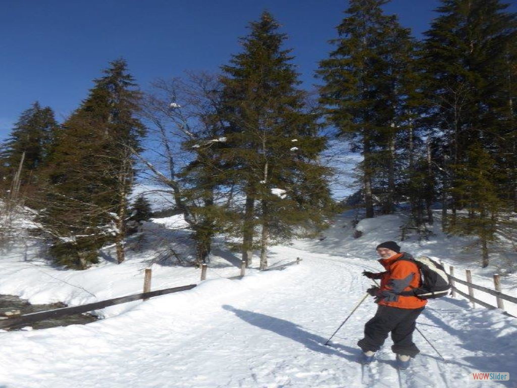 Ja, es hat auf dem Hinweg nach Schönenbach geschneit, aber dann kam, wie in der Wetterprognose angekündigt, die Sonne heraus und es war eine wunderschöne Winterlandschaft. Die Route führt durch ein bewaldetes Tal und ob es schneit, oder die Sonne scheint – jede Wetterlage hat beim Langlaufen ihren eigenen Reiz. Und bei der Einkehr beim Egender in Schönenbach hat man sich ja sowieso aufwärmen und stärken können. Sollen wir nun künftig das Angebot von Langlauftouren im Programm fallen lassen? Eigentlich schade.