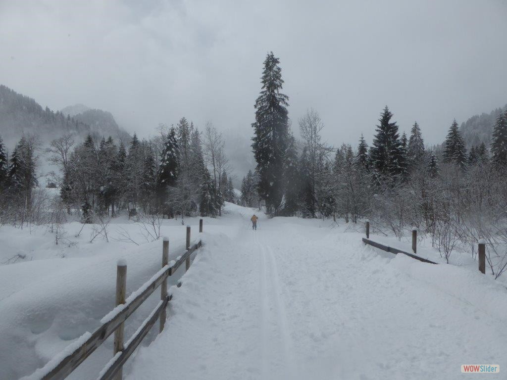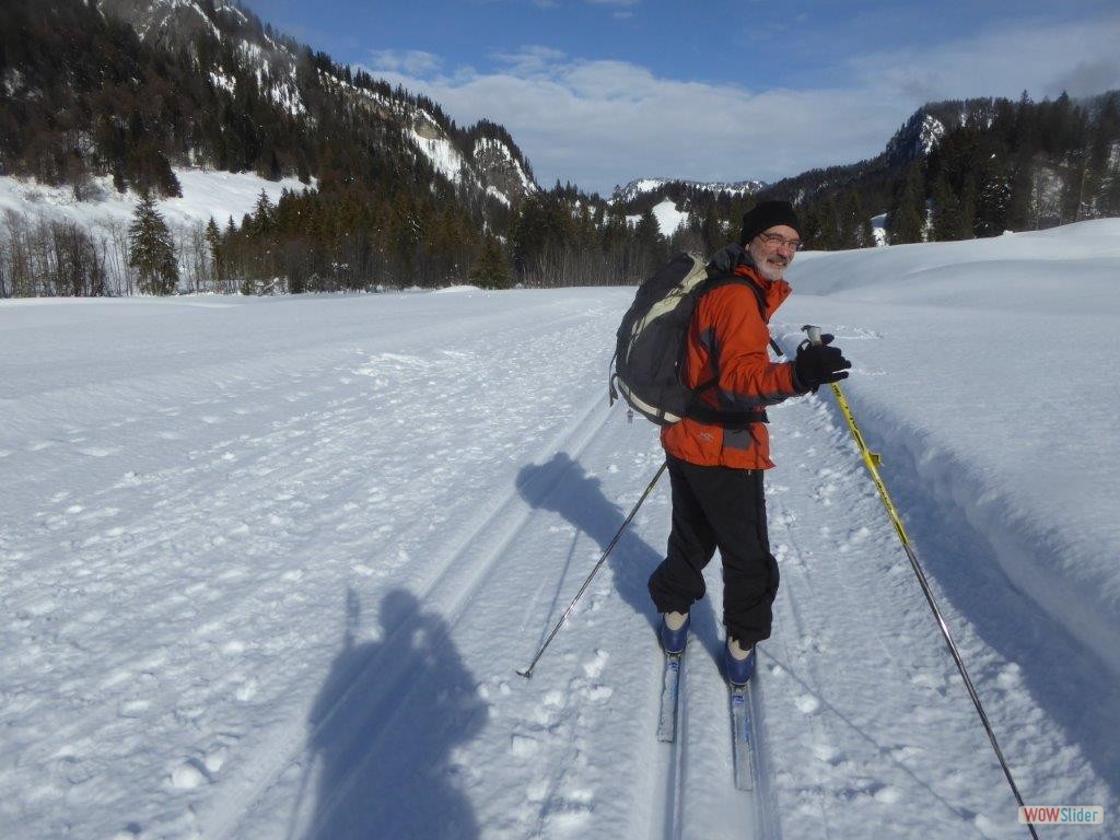 Es war die einzige Langlauftour, die im aktuellen Albvereinsprogramm steht, und die Schönenbachloipe ist zu Recht eine der schönsten Loipen Vorarlbergs, das konnten die beiden Tourenführer Ralf Speetzen und Jürgen Burgau bei dieser Tour erfahren. Warum nur wollte von den 350 Mitgliedern der Ortsgruppe sonst keiner mitmachen?